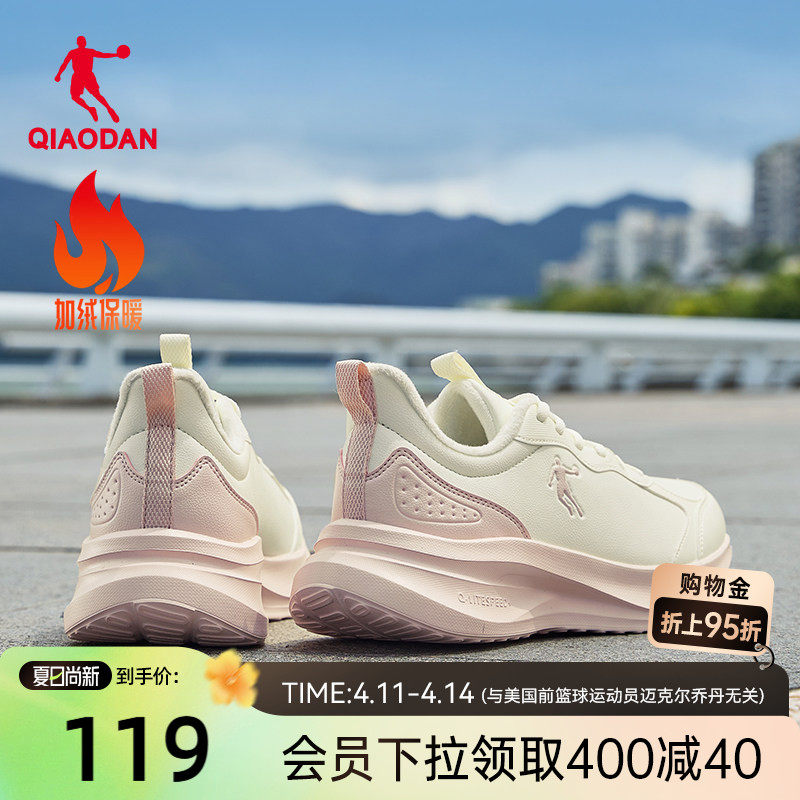 乔丹加绒跑步鞋运动鞋女鞋春季革面防水白色减震轻便软底休闲跑鞋