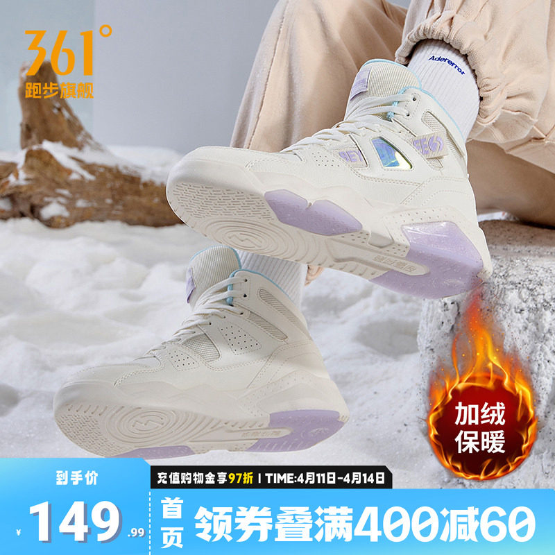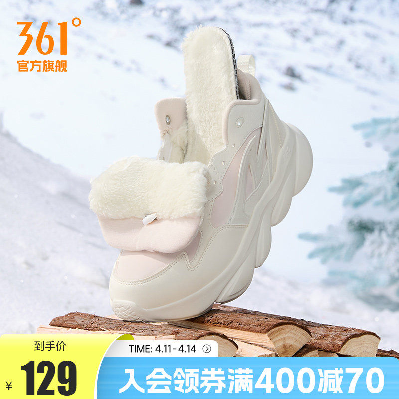 361灵狐女鞋加毛运动鞋冬季高帮加绒保暖大棉鞋皮面防水跑步鞋女
