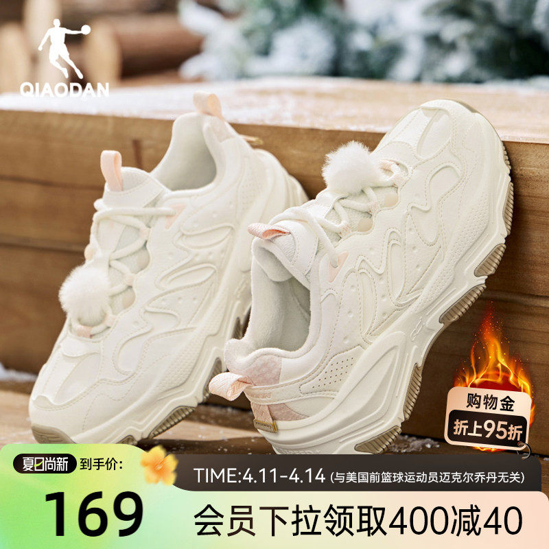 乔丹老爹鞋女春季革面防水鞋子加绒保暖运动鞋女鞋厚底增高休闲鞋