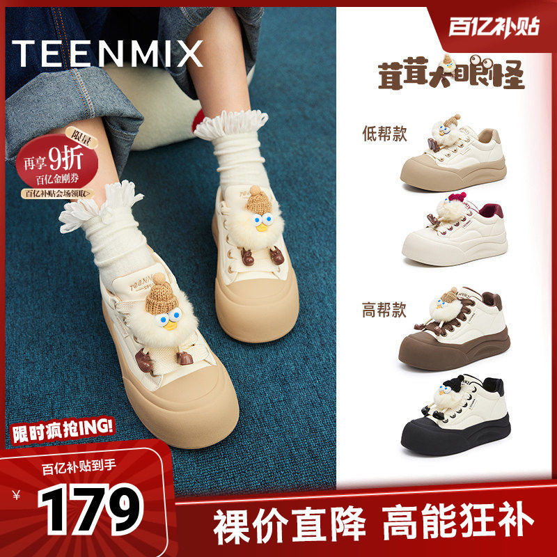 百丽女鞋子厚底小白鞋加绒新款增高鞋面包鞋运动休闲板鞋D5Q1DAM5