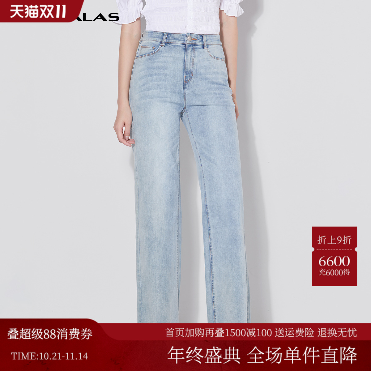 - 弹力牛仔裤女直筒 长裤