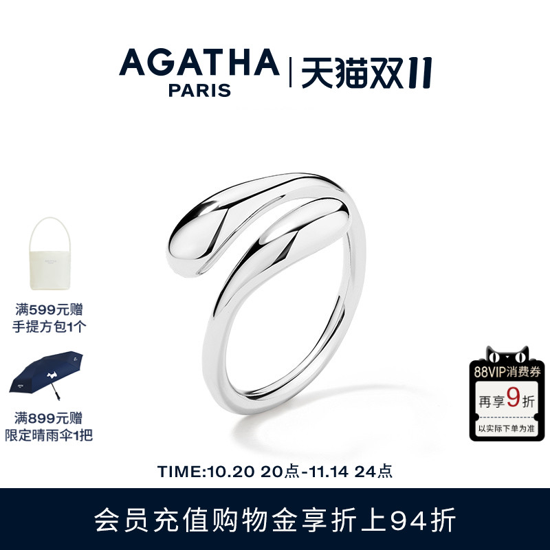 【迪丽热巴同款】AGATHA/瑷嘉莎水滴系列戒指女素圈指环生日礼物