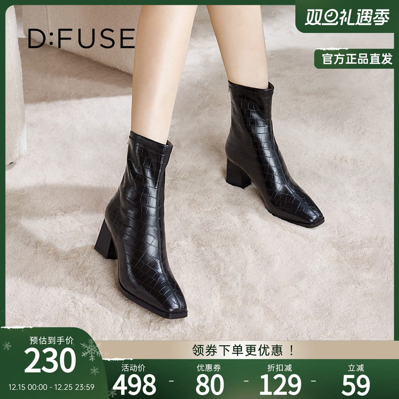 大东粗跟高跟短靴女2025新款秋冬季方头靴子显瘦瘦瘦靴切尔西女靴