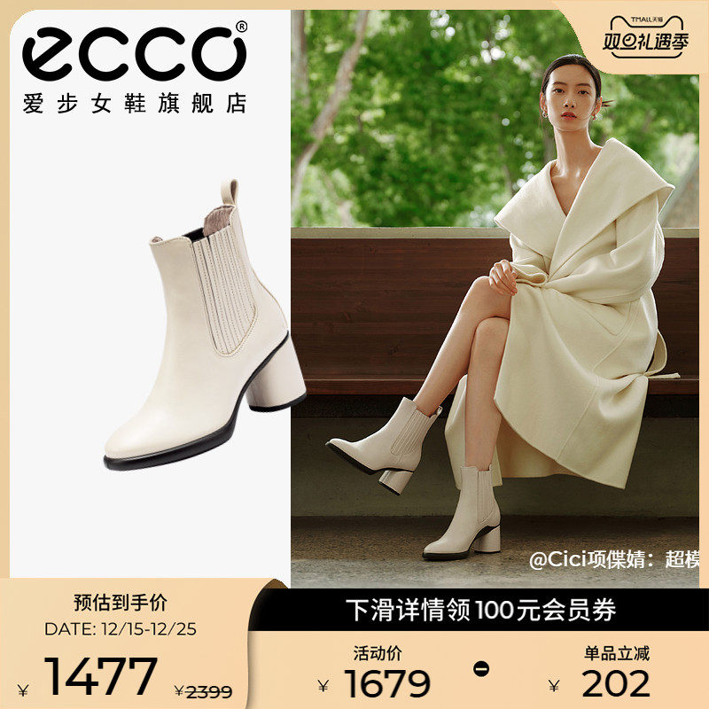 ECCO爱步靴子女 秋冬气质粗跟高跟短靴切尔西靴 雕塑奢华222683