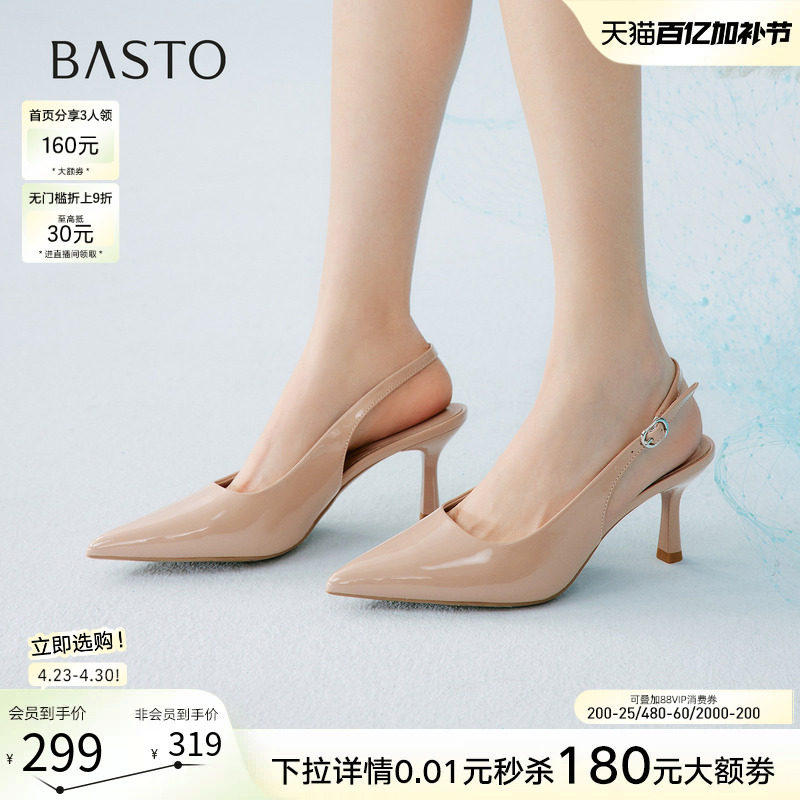 百思图2026夏商场新款气质裸色细跟高跟鞋尖头女后空凉鞋CU712BH6