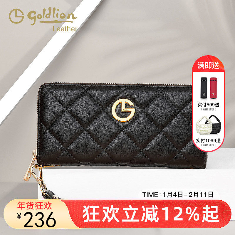 金利来长款钱包女简约新款牛皮手拿包小香风菱格钱夹多卡位皮夹潮