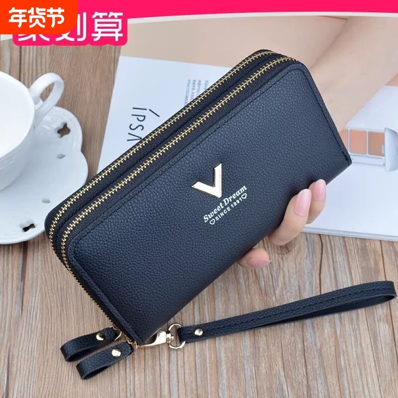 新款女士双拉链手拿钱包长款时尚大容量双层钱夹手机简约小包零钱
