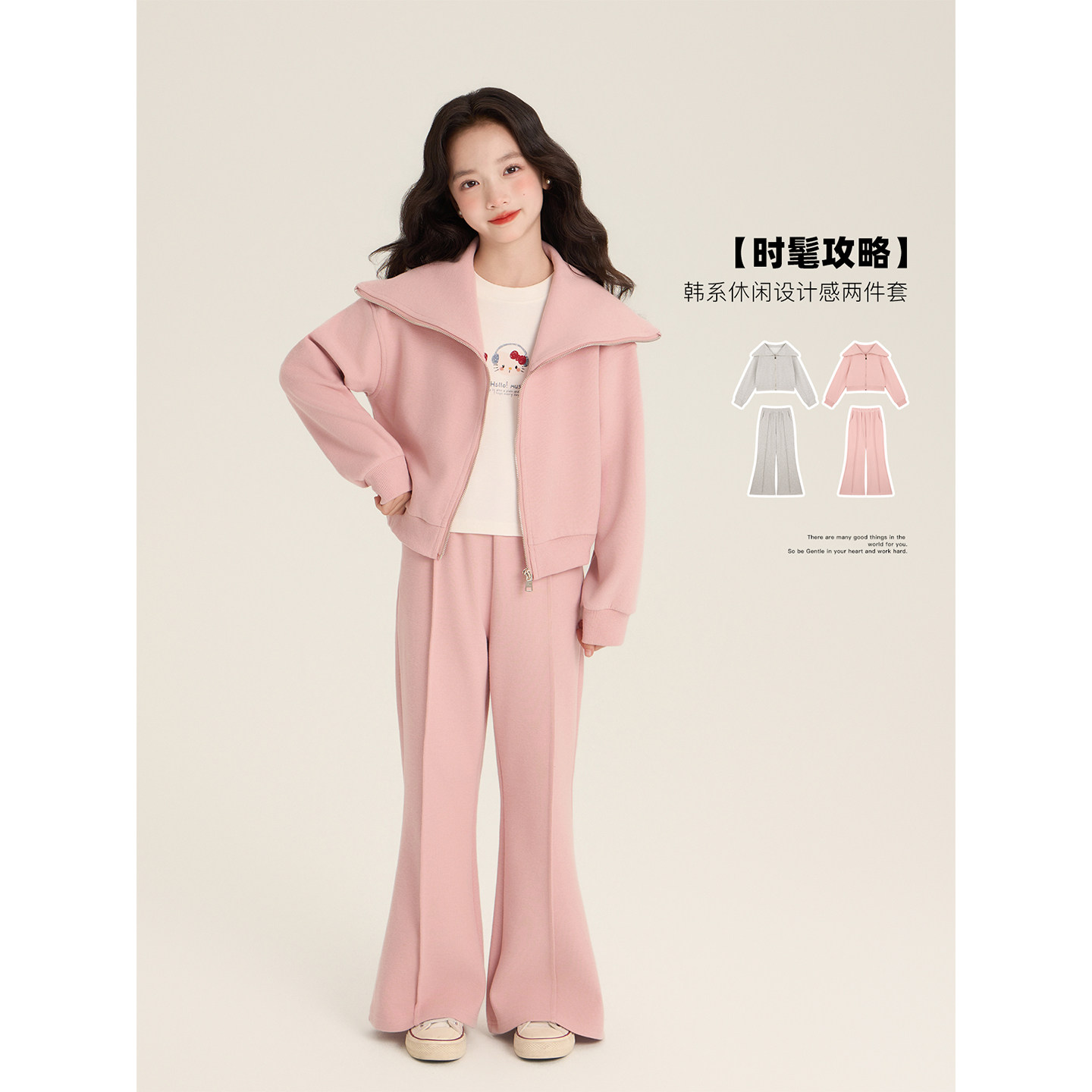 Amybaby女童套装春季2026新款韩系学院风气质减龄卫衣开衫阔腿裤