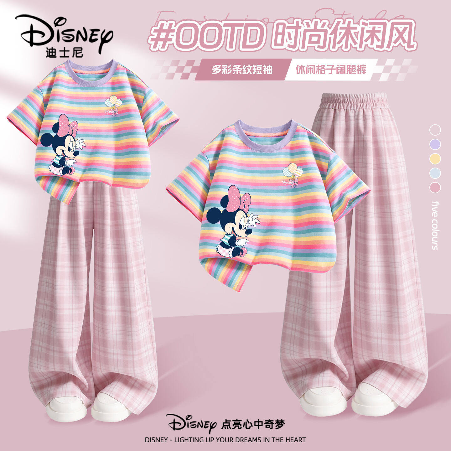 迪士尼女童夏季套装2026新款童装女孩短袖t恤阔腿裤儿童夏装衣服