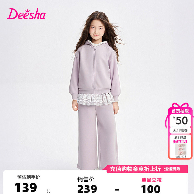 笛莎官方旗舰童装女童运动套装春秋季新款儿童假两件外套阔腿裤套
