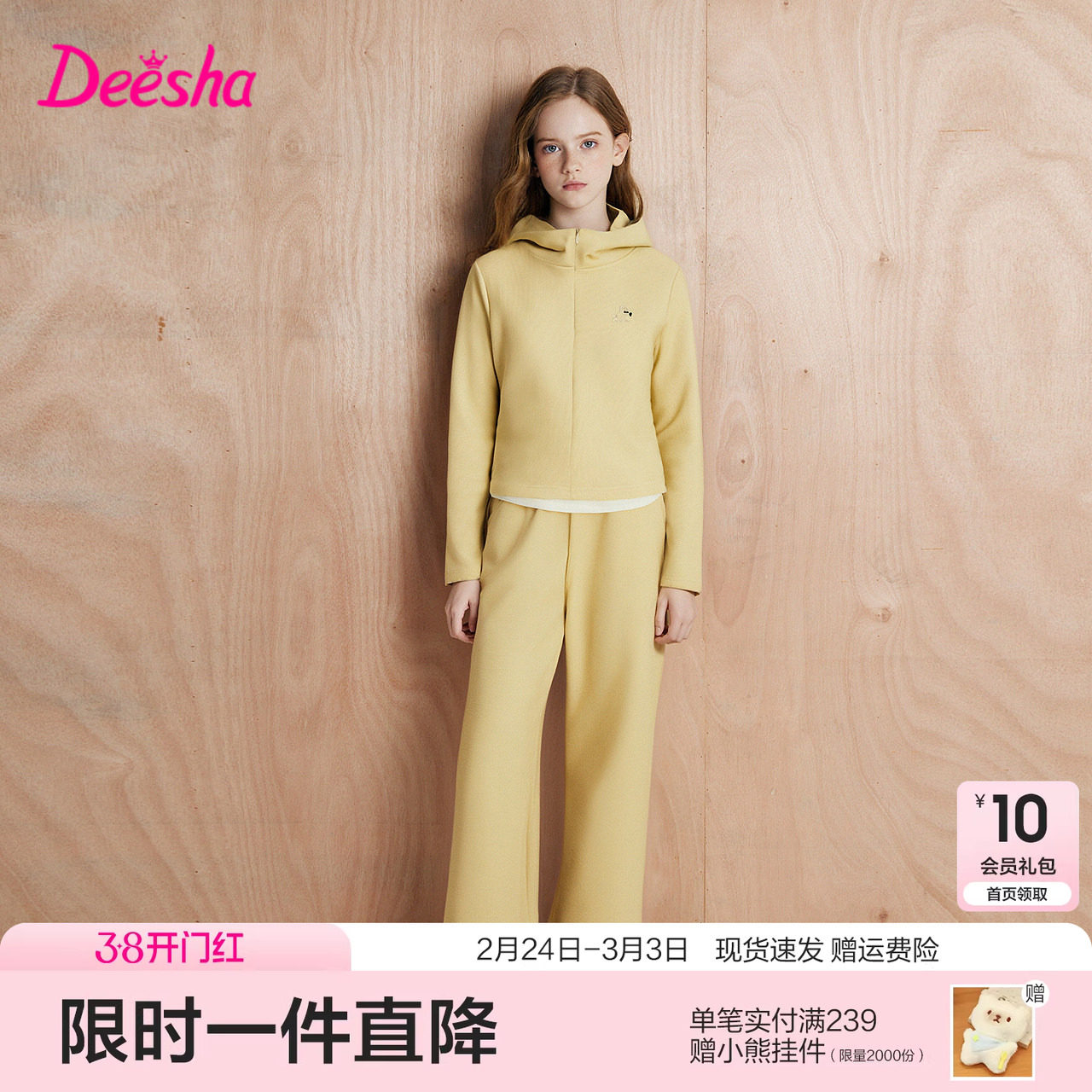 笛莎童装女童套装春季新款儿童女孩宝宝卫衣外套阔腿裤两件套洋气