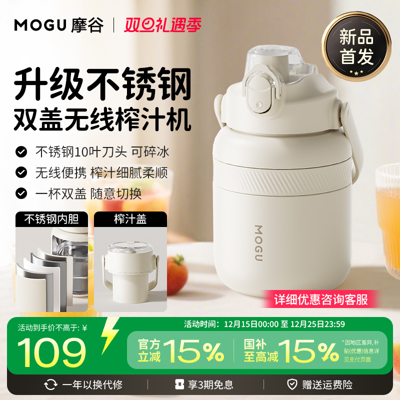 摩谷便携式榨汁机小型家用多功能炸果汁无线充电不锈钢迷你随身杯