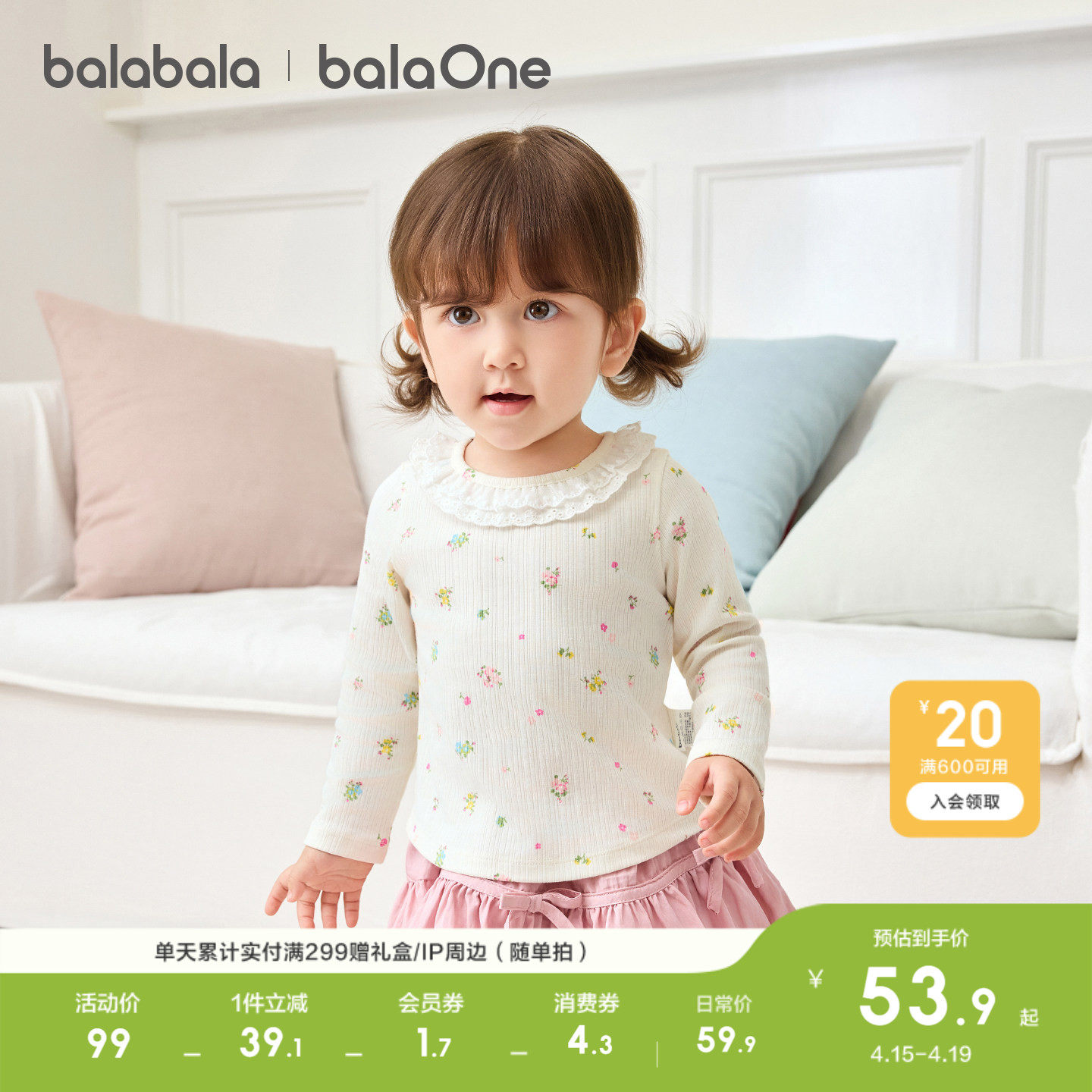 巴拉巴拉童装女童长袖t恤2026新款春装婴儿宝宝衣服儿童上衣甜美