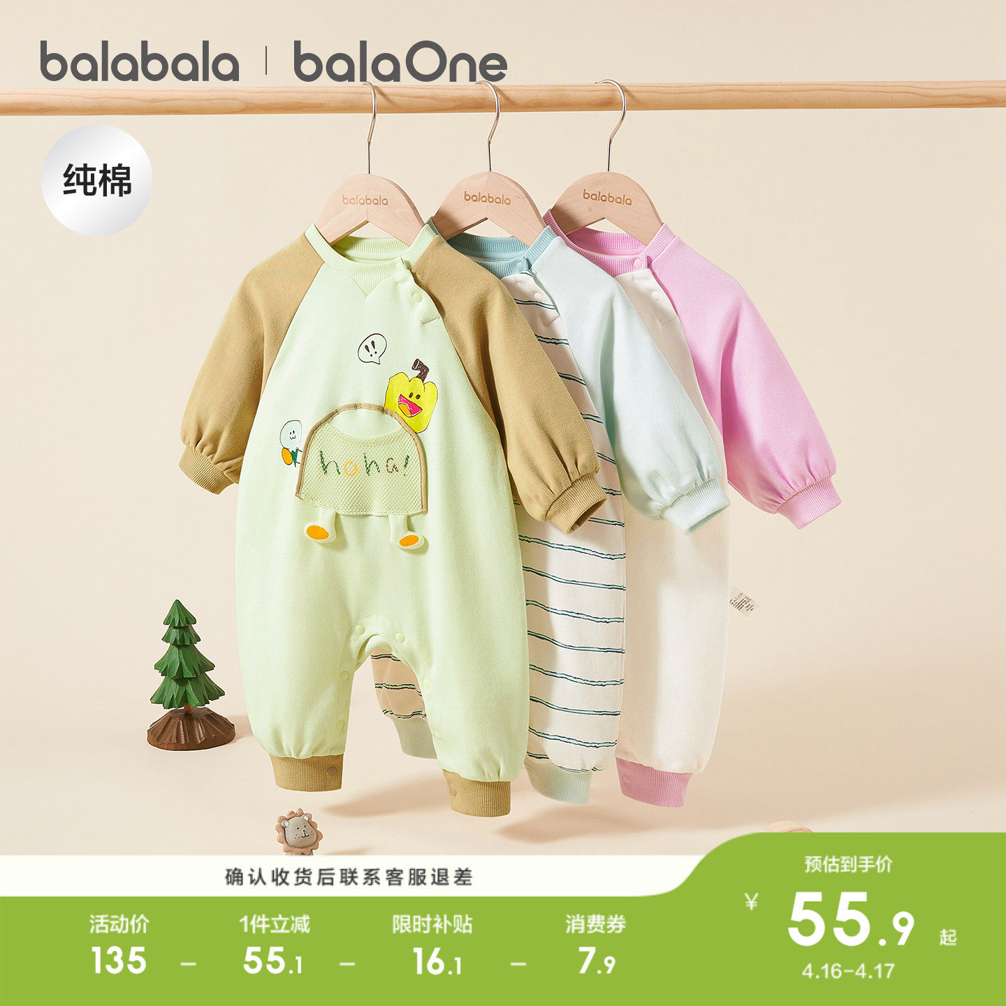 巴拉巴拉新生婴儿连体衣宝宝衣服爬爬服哈衣2026新款春装可爱萌趣