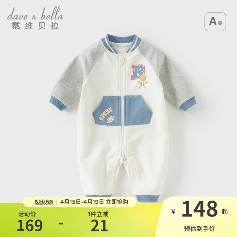 戴维贝拉新生儿A类爬服2026男宝新款运动风连体衣婴儿包屁衣春装