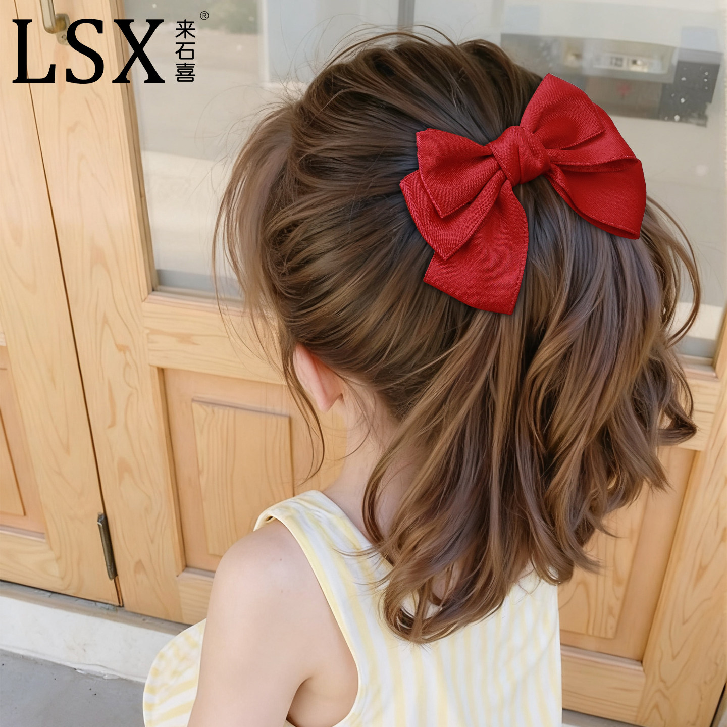 韩国儿童红色蝴蝶结发夹公主百搭后脑勺发卡女童顶夹新年女孩头饰