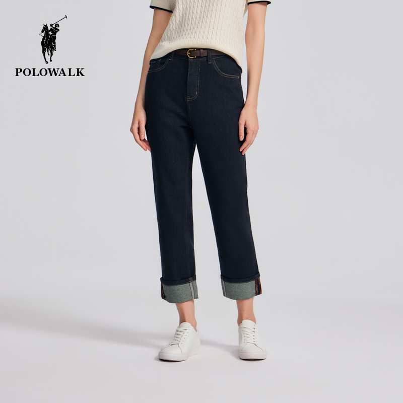 POLOWALK女装2025秋季新品女式牛仔裤时尚翻边通勤百搭长裤女款