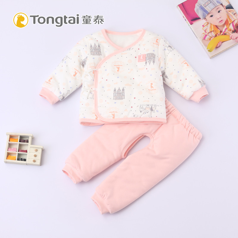 童泰新款新生儿开裆和服棉服套装0-3个月男女宝宝中厚薄棉两件套