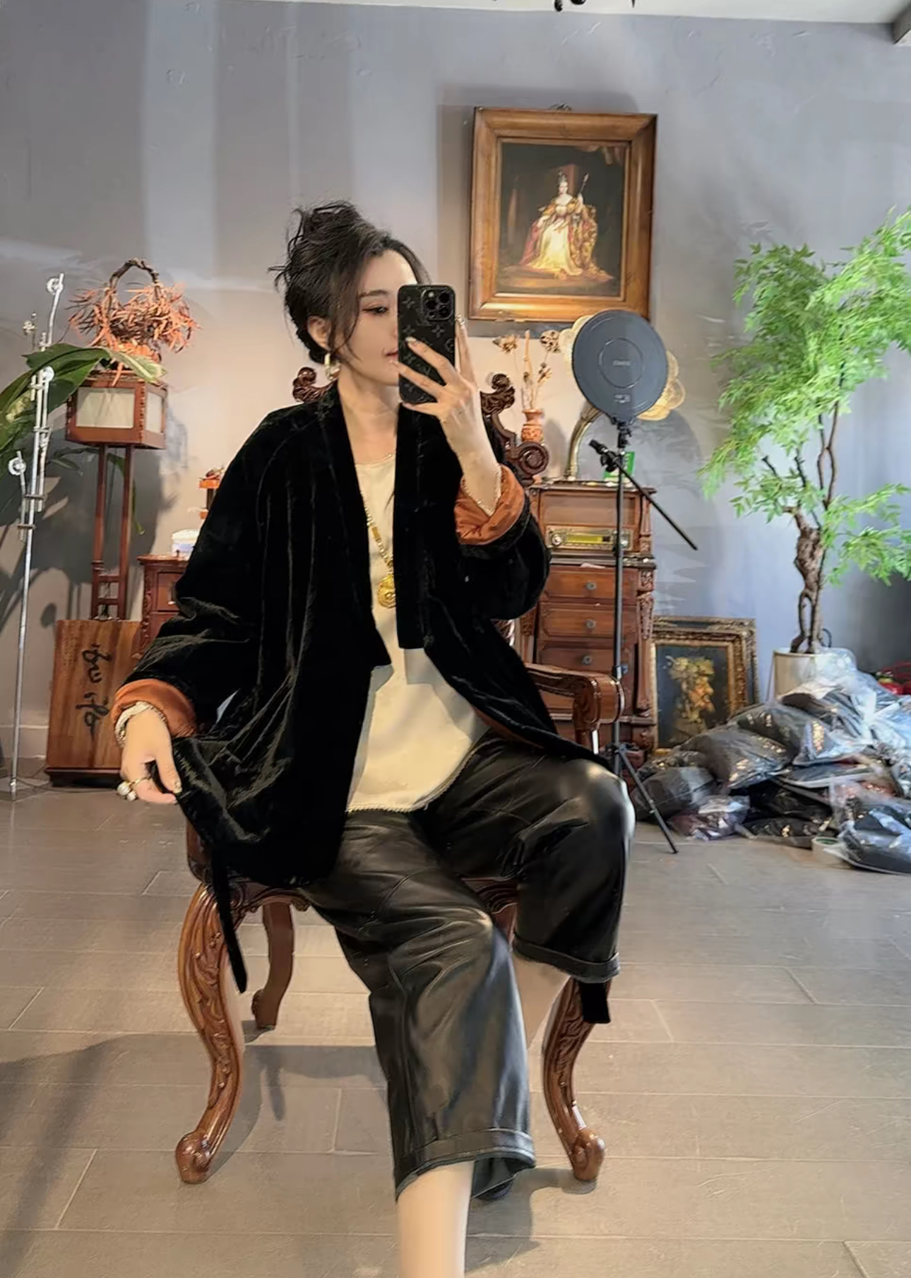 新中式国风丝绒真丝提花宽松加棉外套女2025秋冬复古和服棉服上衣