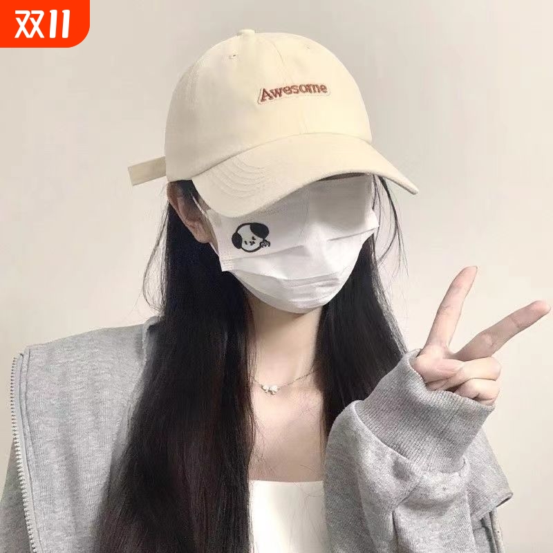春秋夏季韩版白色棒球帽女薄款日系时尚遮阳字母刺绣鸭防晒休闲帽