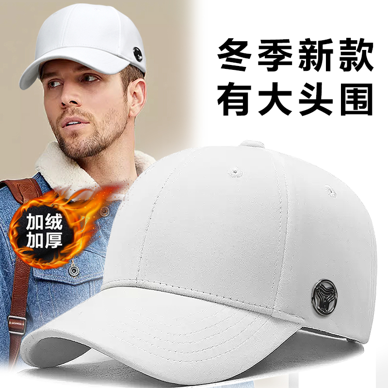大头围新款冬季白色棒球帽男加绒加厚保暖防寒鸭舌帽时尚帽子男冬