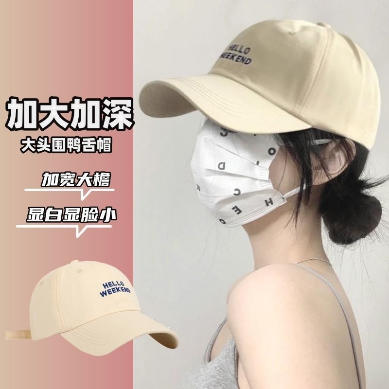 大头围棒球帽女春夏时尚百搭显脸小刺绣宽鸭舌帽加深帽檐大脸白色