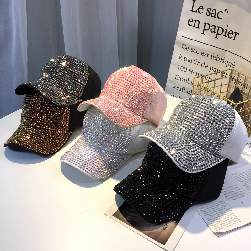 网红同款全钻白色棒球帽韩版时尚洋气舞台春夏季情侣遮阳鸭舌帽男