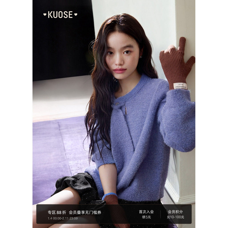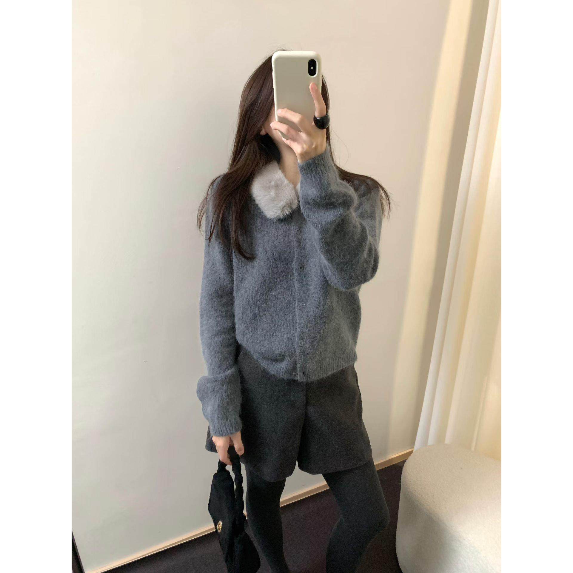 IUROOM韩版毛领针织开衫女2025新款软糯慵懒风宽松短款毛衣上衣冬