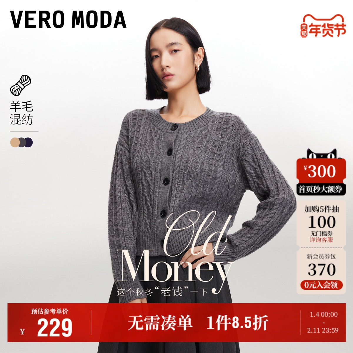 Vero Moda奥莱针织开衫女2025秋冬新款绞花复古微宽松短款毛衣