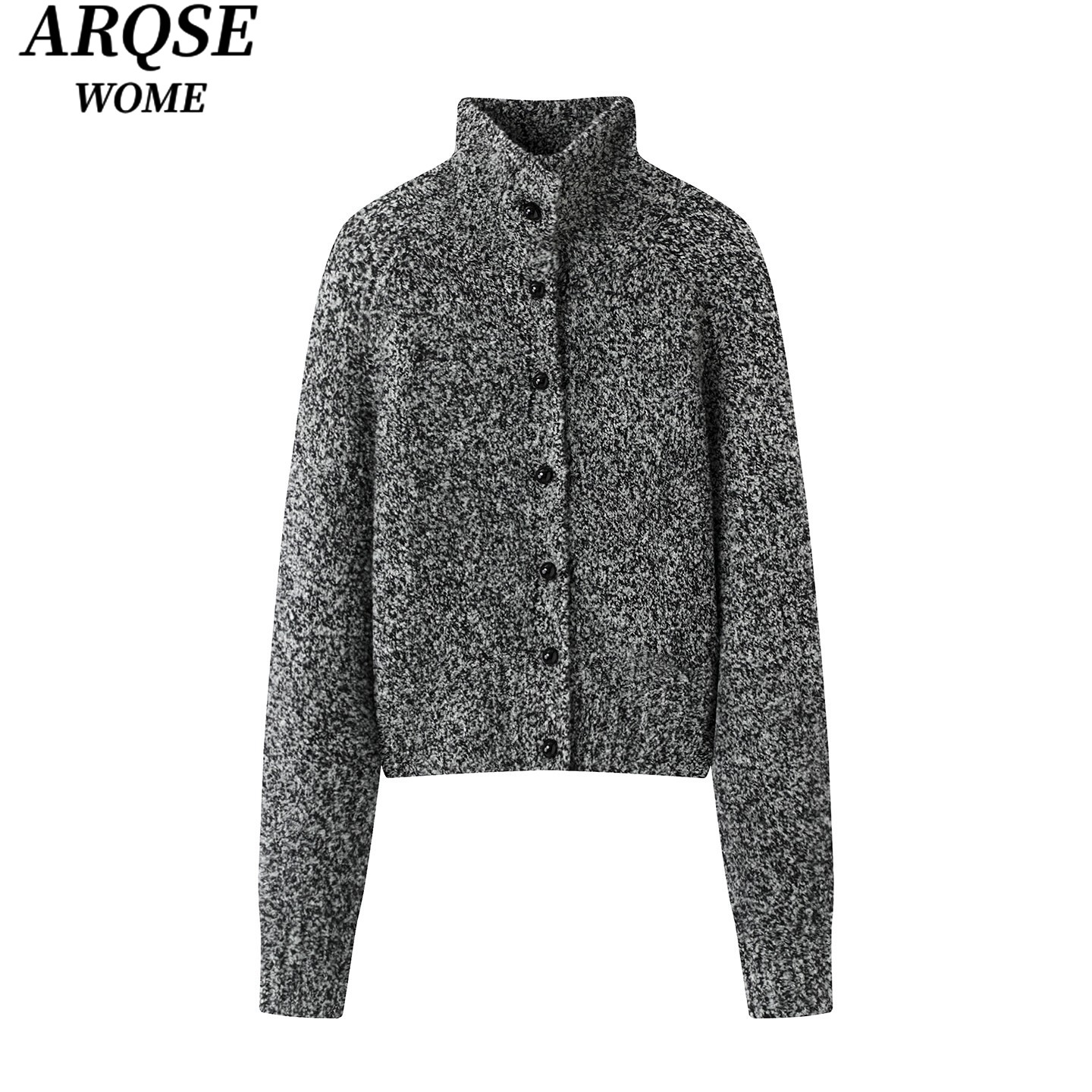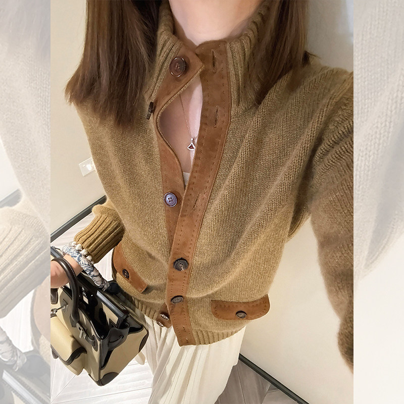 美拉德咖色立领针织开衫女秋冬老钱风复古宽松短款毛衣外套上衣厚