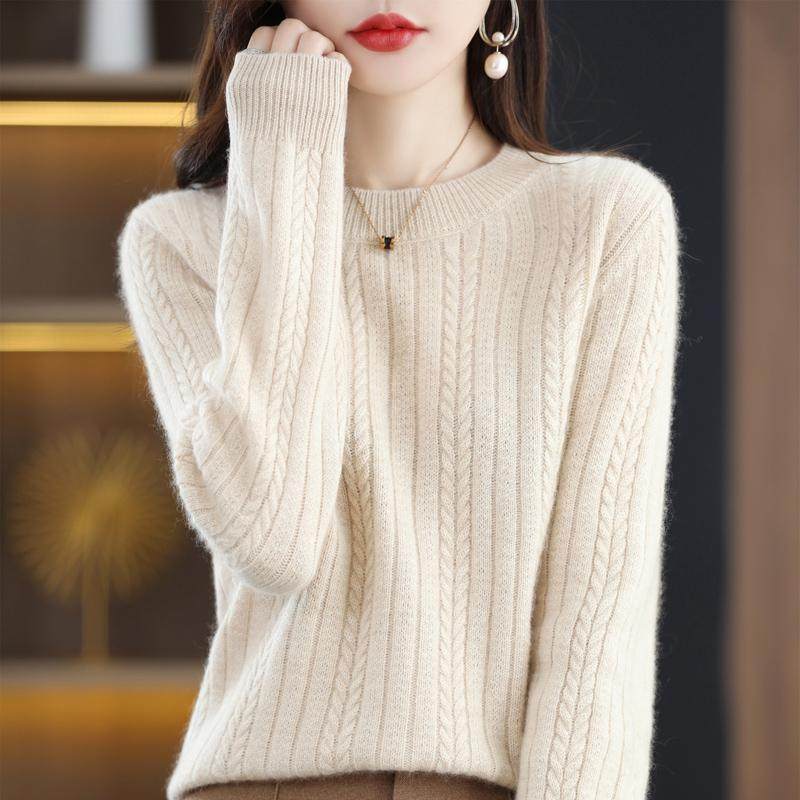 2025秋季一线成衣羊绒衫女圆领针织衫宽松短款毛衣大码打底衫套头