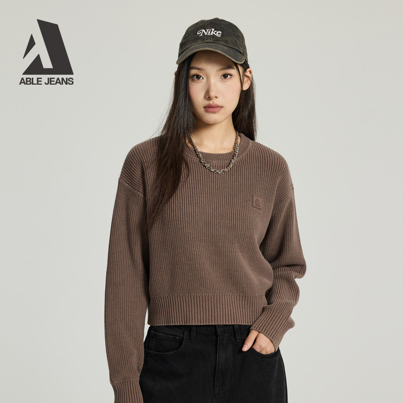 ABLE JEANS 2025冬季新款女士宽松短款毛衣圆领套头毛衫针织衫