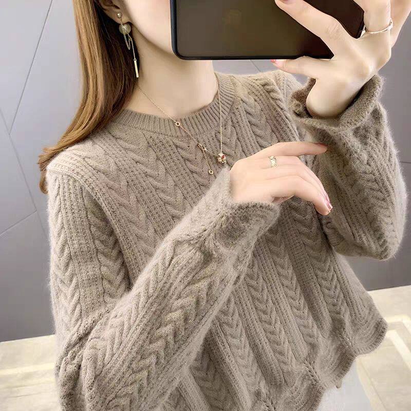 aaaaxbbb 夏布拉塔 超保暖羊驼毛短款毛衣圆领宽松显瘦上衣内搭女