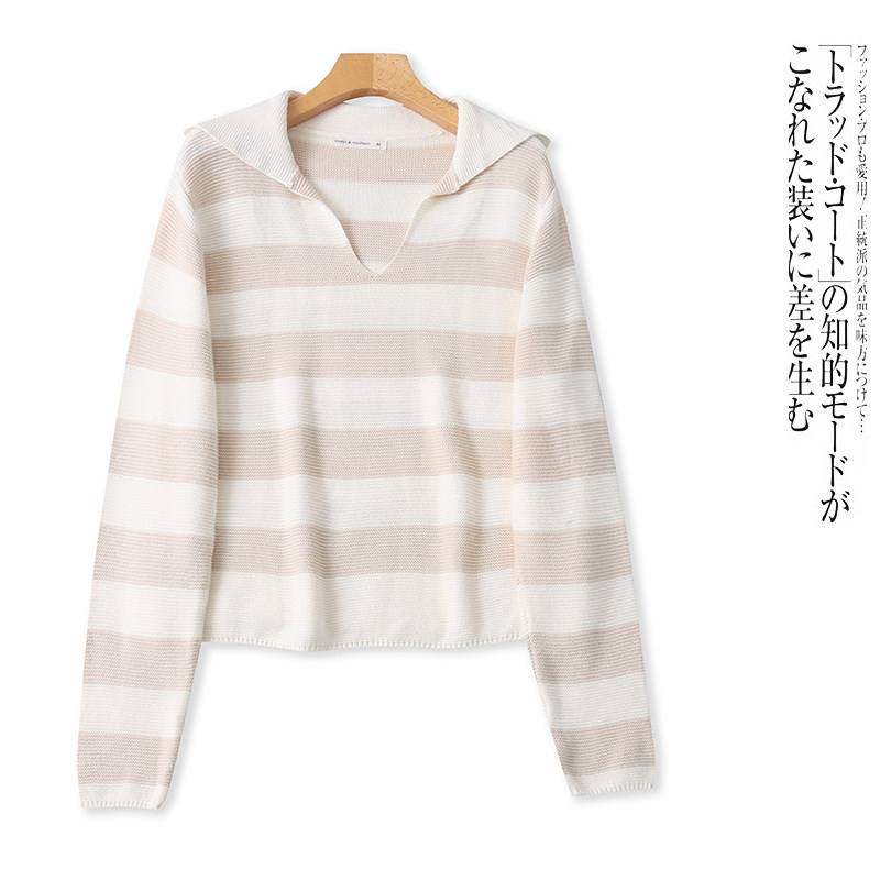 AA9632外贸欧美女生针织衫新款翻V领套头拼色甜美宽松短款毛衣