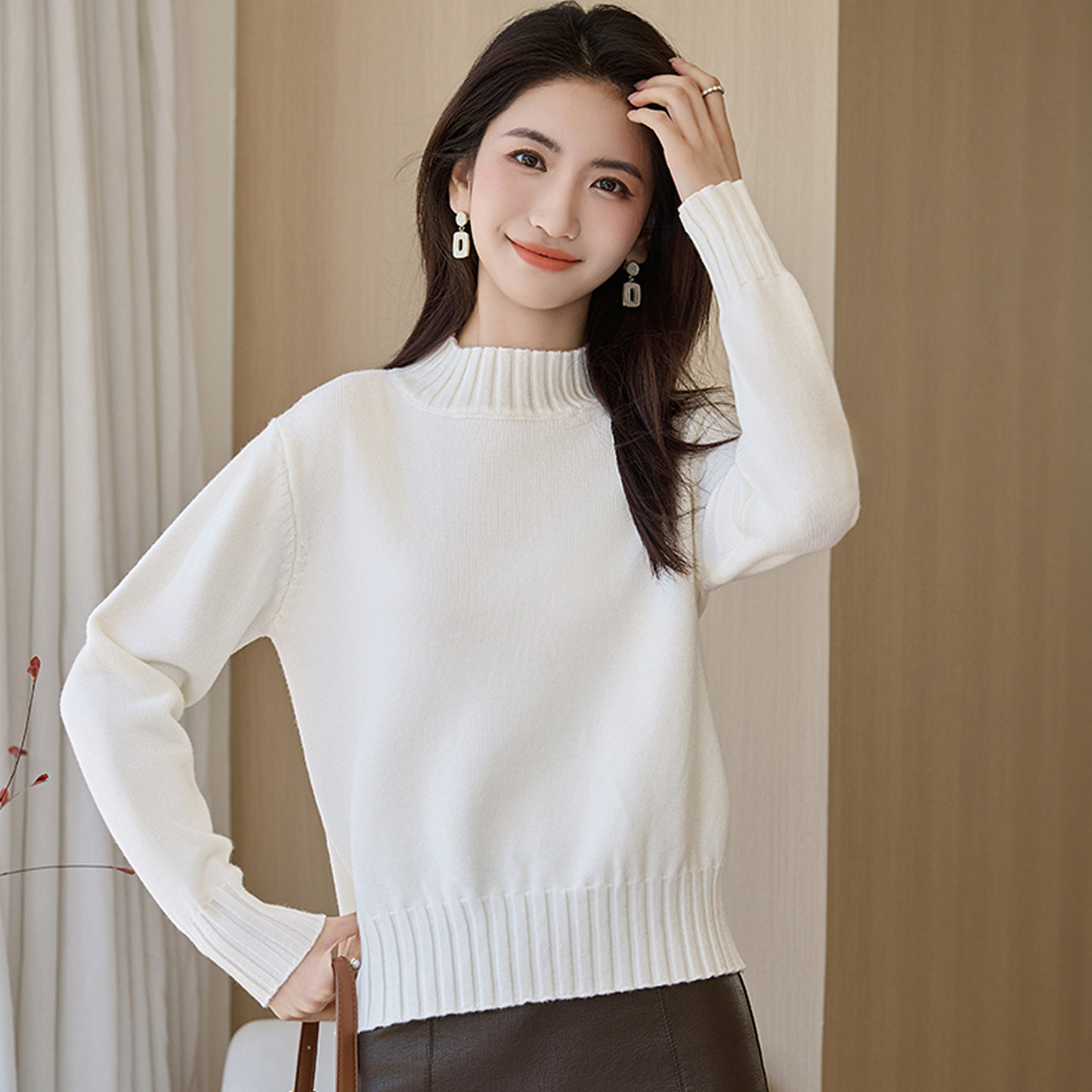半高领宽松短款毛衣女冬季加厚可外穿内搭打底衫小个子针织衫上衣