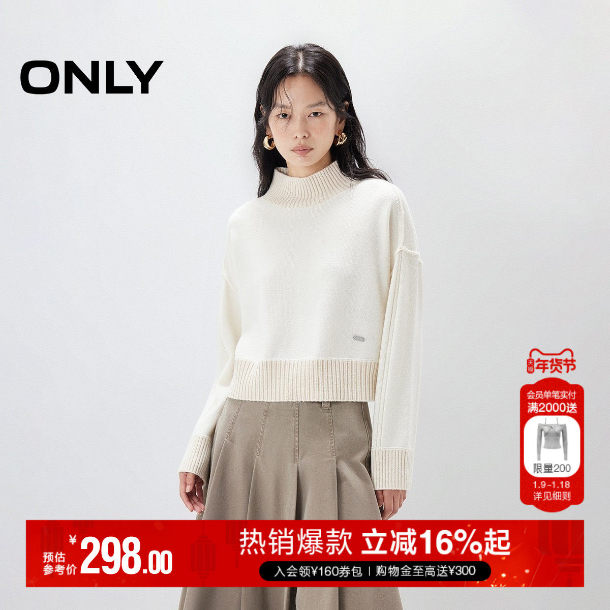 ONLY2025冬季新款含羊毛双色线混织松弛高领宽松短款毛衣针织衫女