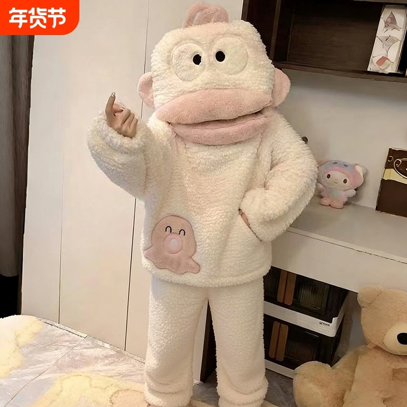美标加厚珊瑚绒睡衣情侣装冬季款保暖白色羊羔绒家居服套装可外穿