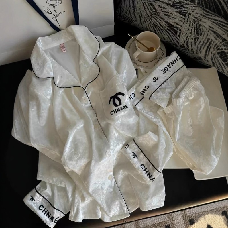 金丝绒睡衣女秋冬长袖轻奢高级感白色字母2024新款网红家居服套装