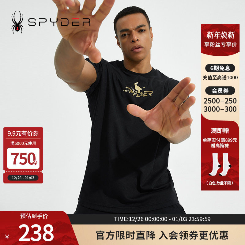 SPYDER男女同款SKI LIFE圆领套头新年印花情侣短袖T恤22CF435U