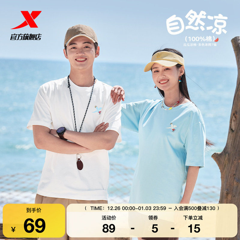 特步凉感T恤男女2025年新款夏季纯棉情侣短袖T恤休闲半袖运动上衣