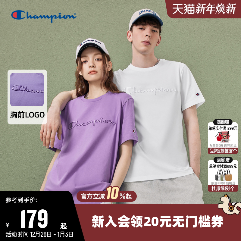 Champion冠军T恤女2025夏季新款刺绣美式纯棉情侣短袖圆领上衣男