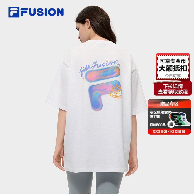 FILA FUSION斐乐潮牌情侣短袖t恤女2026春季新款百搭纯棉白色上衣