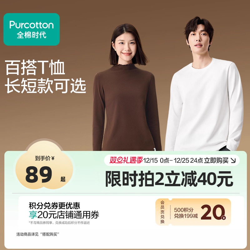 全棉时代T恤情侣短袖男女7A抗菌圆领纯棉百搭高配简约100%全棉