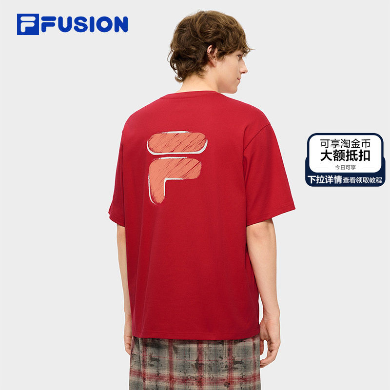 章昊同款FILA FUSION斐乐潮牌情侣款短袖2026春新年款宽松红色T恤