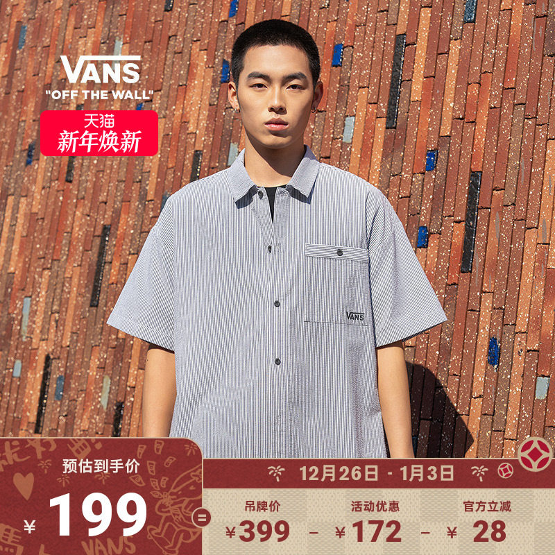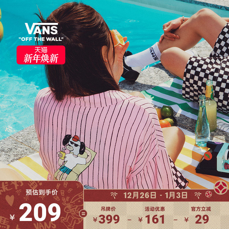 Vans范斯官方 亚洲艺术家联名男女情侣短袖衬衫条纹度假小狗