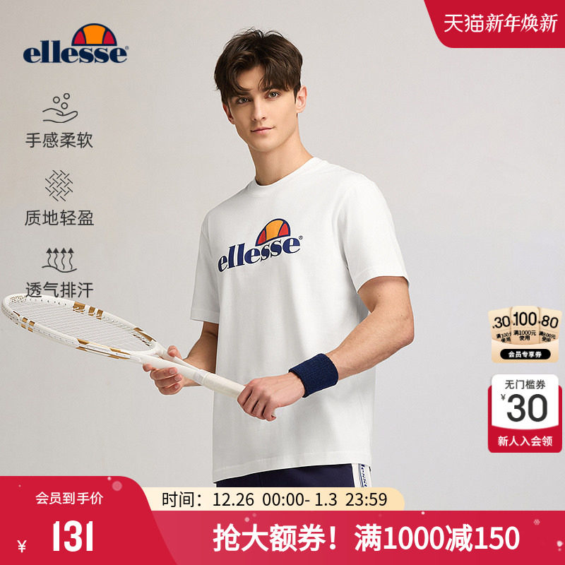 ellesse小贝壳官方情侣短袖t恤女全棉宽松跑步健身舒适运动上衣男