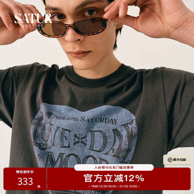 【明星同款】SATUR ARCHIVE2025夏新款复古爱心系列情侣短袖T恤