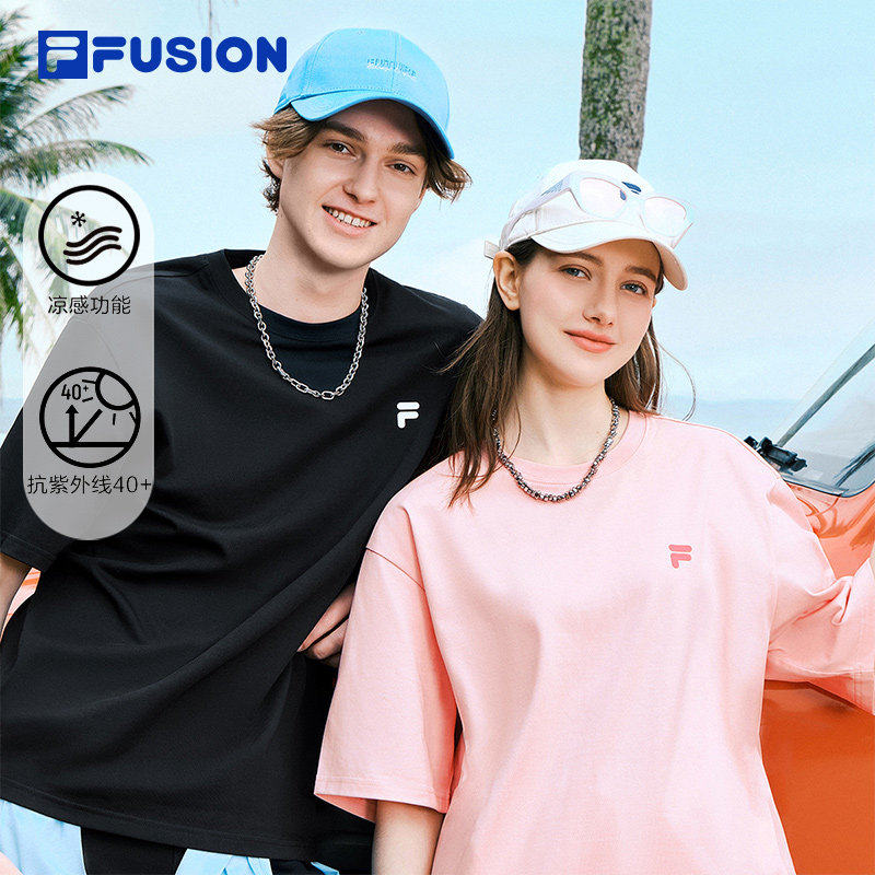 FILA FUSION斐乐潮牌情侣短袖T恤2025夏宽松运动凉感防晒上衣男女