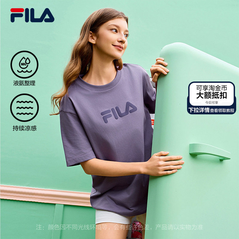 凉感T|FILA斐乐官方情侣短袖T恤秋季新款熊猫刺绣上衣女短袖衫男t