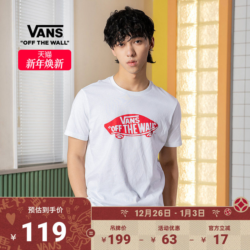 Vans范斯官方 男女情侣短袖T恤夏季滑板LOGO经典款红白出游好物